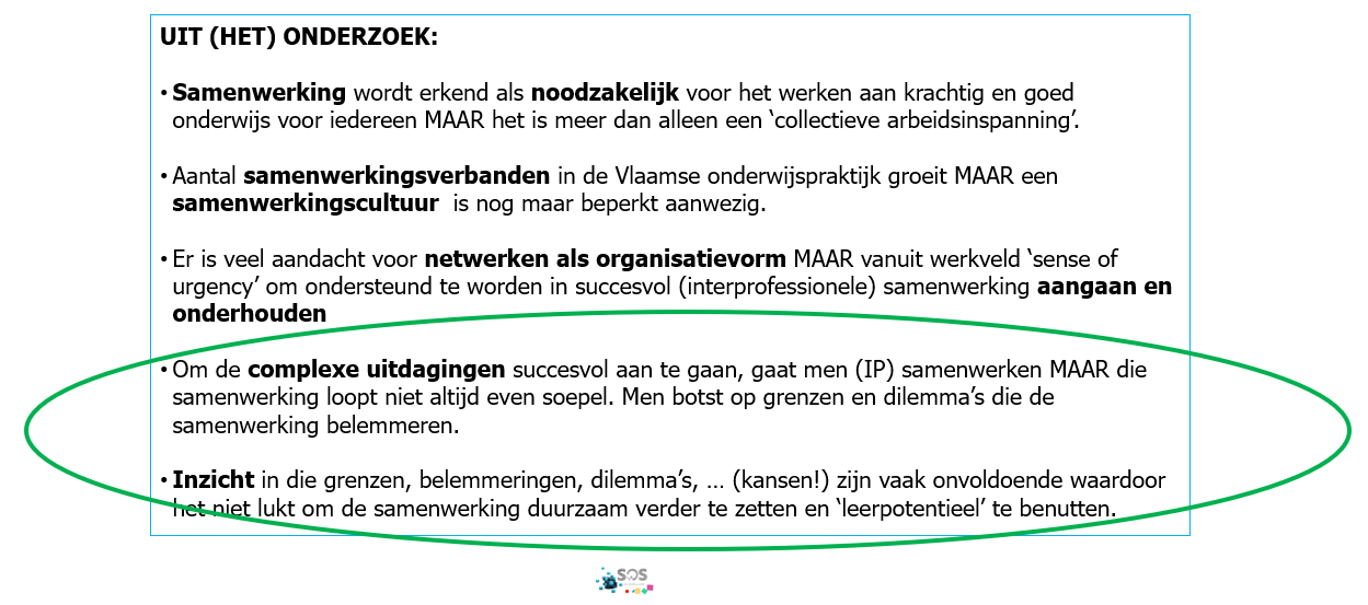Uit de wetenschappelijke literatuur rond interprofessioneel samenwerken haalden we volgende belangrijke inzichten: