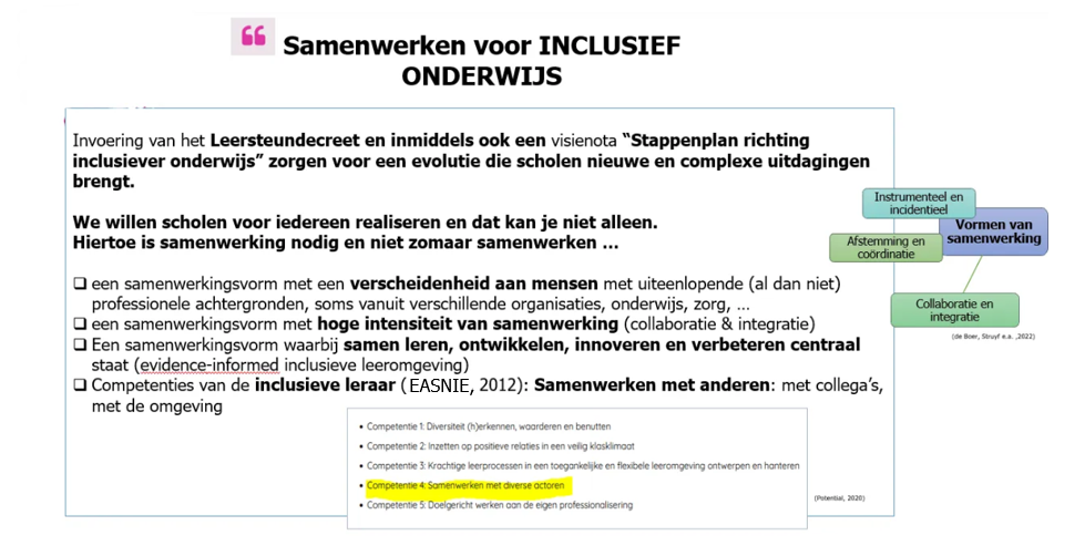 Uit wettelijke kaders en wetenschappelijke literatuur rond samenwerken voor krachtig inclusief onderwijs:
